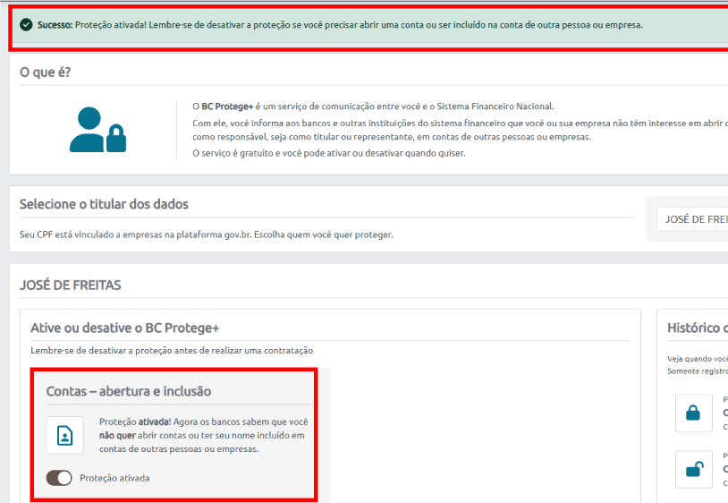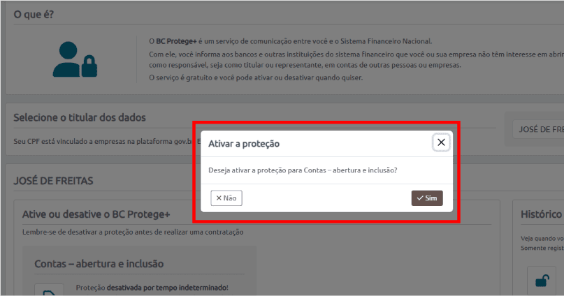 Não se preocupe, o controle está sempre nas suas mãos. Se você decidir abrir uma nova conta em qualquer banco, basta seguir os mesmos passos e escolher a opção “Desativar proteção”.